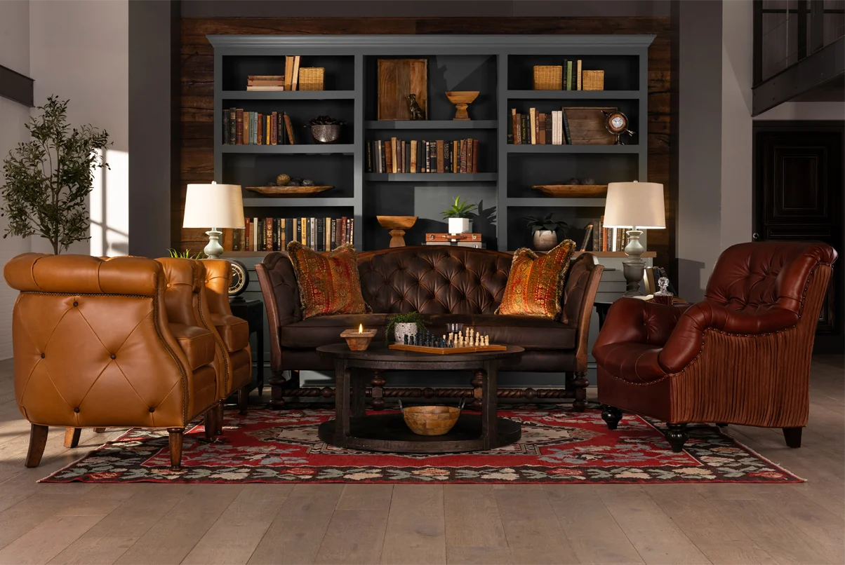 Sleek and beguiling frames comprise the group, all named for iconic Golden Age Hollywood talent. The rest of the look is up to your creativity. Each can be customized to fit the decor and ambiance of the room. Whether you opt to re-purpose samples from our “odd lots” or combine specialty hides with leather —or send us your own leather and fabric—the final product will reflect your incomparable taste.