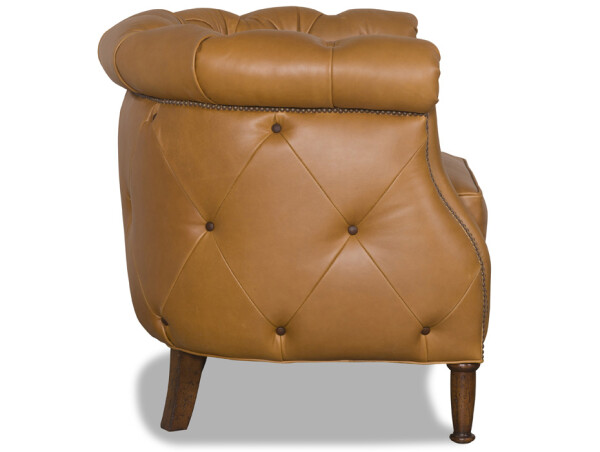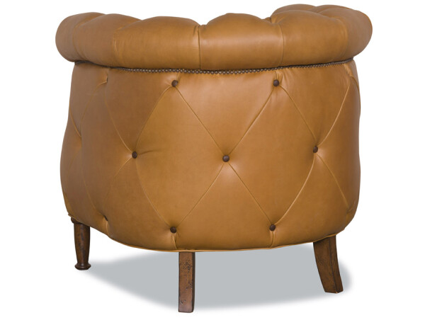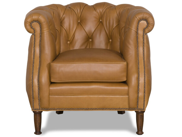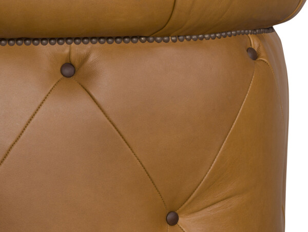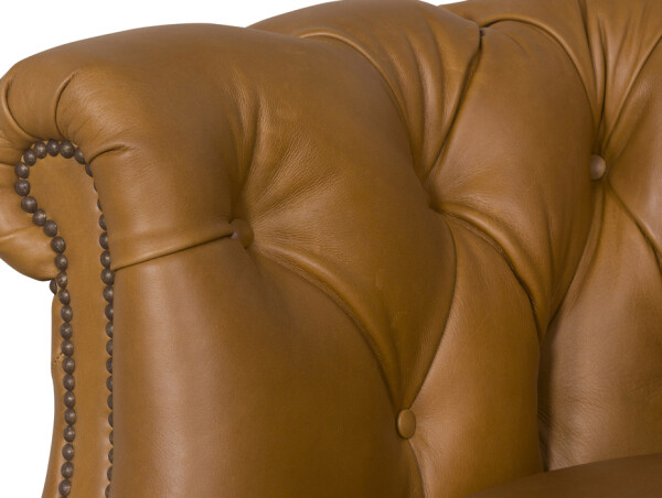 Sensational, large-scale tub chair Sylvester, features a tufted harlequin-inspired back, high kingly arms, and dramatic details throughout.