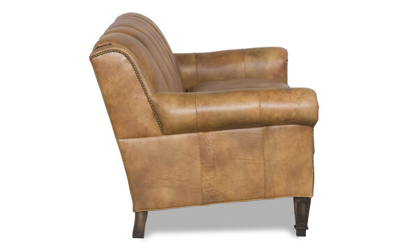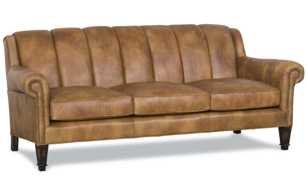 The Remus Channel-Back Sofa, named for America’s foremost bootlegger, is upholstered in a soft leather with great vintage appeal. Cushions are Royal Down-filled; the channel back maximizes the down’s comfort.