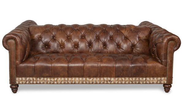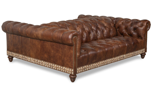 This spectacular statement piece, the double-sided Hotsy-Totsy, (1920s slang for “perfect”) features radiant, lush leather with deep all-over tufts, Chesterfield-style. The low-profile, low-slung design encourages your friends to lean in and chat—or lean back and de-stress. Detailing, like the addition of the specialty contrast trim on the gleaming leather, is just one example of the many creative options available at McKinley Leather.