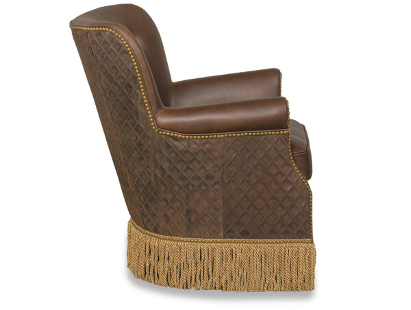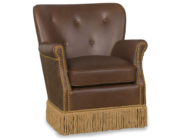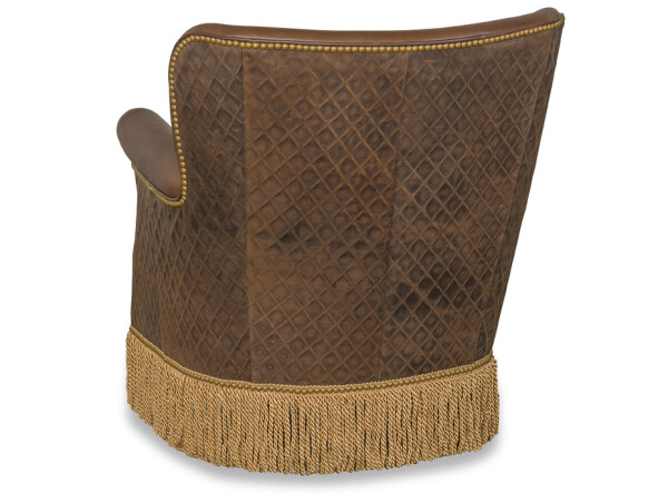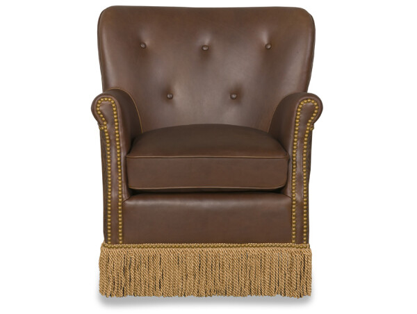 The McCoy Chair, available in a spill-resistant fine leather, features gold fringe. It's named for Bill McCoy, a rum runner with high quality standards, and said to be the man behind “the real McCoy.”