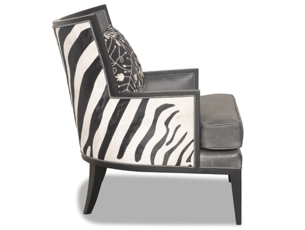 Clean lines and vintage Art Deco styling shine in Garland. This version features a showstopping zebra print hair-on-hide on the outside back, with an odd lot fine leather on the arms and inside, plus a coordinating fabric kidney pillow.